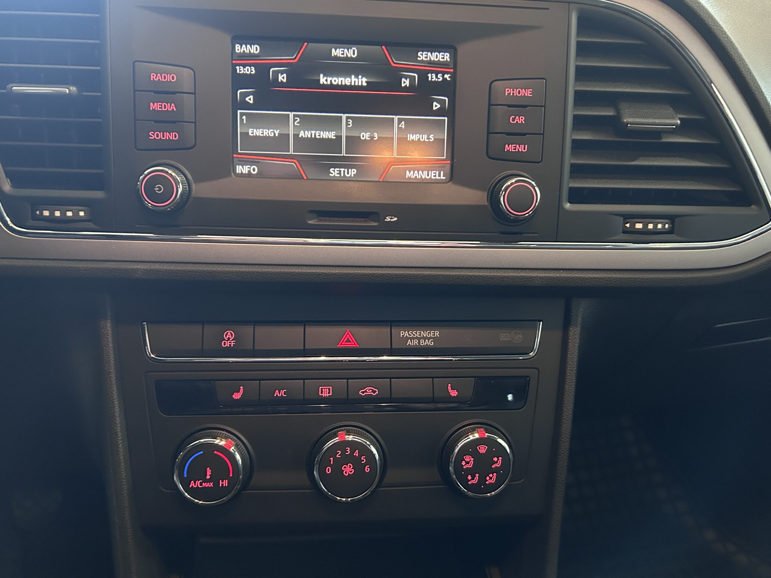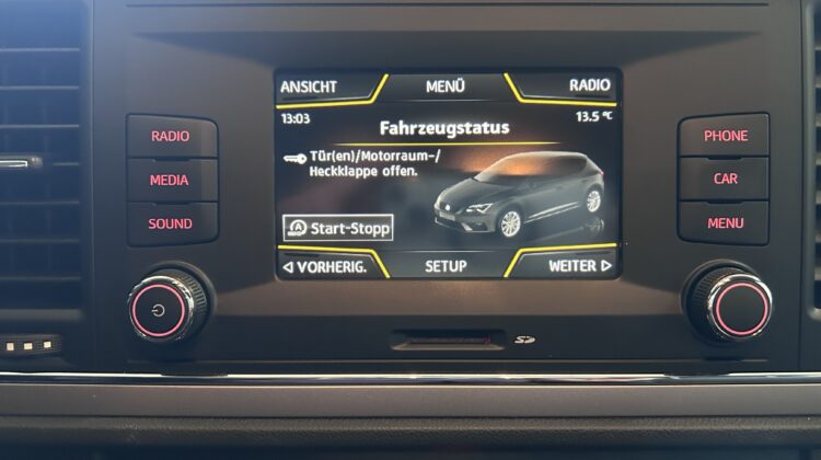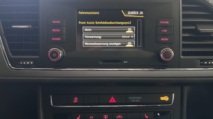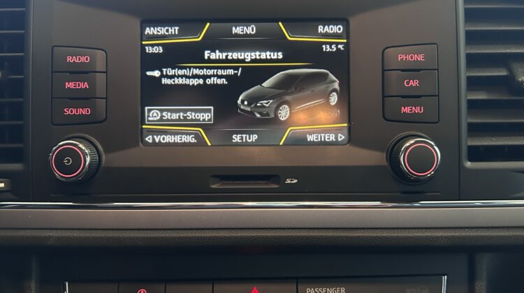 SEAT Leon Style 1,5 TSI ACT Start-Stopp € 12.990 Vehicle Description SerienausstattungSonderausstattung Farbe: Candy Weiss Erstzulassung: 11/2019 Laufleistung: 141 430 PS 131/KW 96 Hubraum: 1498 ccm Treibstoff: Benzin Getriebe-Typ: Schalter Finanzierung auch ohne Anzahlung möglich!!! 8-fach Bereifung LM-Felgen 6,5x16 (Design II) Sonderlackierung Weiß Winter-Paket Ablagetasche an Vordersitzlehnen Airbag Beifahrerseite abschaltbar Airbag Fahrer-/Beifahrerseite Anti-Blockier-System (ABS) Antriebs-Schlupfregelung (ASR) Außenspiegel elektr. verstell- und heizbar, beide Außenspiegel und Türgriffe außen in Wagenfarbe Außentemperaturanzeige Blinkleuchten LED in Außenspiegel integriert Bordcomputer Bremsassistent Doppelscheinwerfer Elektron. Differentialsperre (EDS) Elektron. Stabilitäts-Programm (ESP) Elektron. Stabilitätskontrolle (ESC) Fahrassistenz-System: Berganfahr-Assistent (Hill-Holder) Fahrassistenz-System: Berganfahr-Assistent und Elektron. Differentialsperre Fahrassistenz-System: Umfeldbeobachtungssystem (Front assist) mit City-Notbremsfunktion Fensterheber elektrisch hinten Fensterheber elektrisch vorn Geschwindigkeits-Regelanlage (Tempomat) Getriebe 6-Gang Handschuhfach beleuchtet Innenausstattung: Chrom-Applikationen Innenraumlicht-Paket LED Isofix-Aufnahmen für Kindersitz Karosserie: 5-türig Klimaanlage Knieairbag Fahrerseite Kopf-Airbag-System Kopfstützen hinten (3-fach) Kopfstützen vorn verstellbar Lendenwirbelstütze Sitz vorn links, verstellbar Lenkrad (Sport/Leder) Mittelkonsole vorn mit Mittelarmlehne, Becherhalter, Ablagebox und Luftdüsen hinten Modellpflege Motor 1,5 Ltr. - 96 kW 16V TSI ACT Nebelscheinwerfer mit Abbiegelicht integriert Otto-Partikelfilter (OPF) Parkbremse elektrisch Reifen-Reparaturset Reifenkontroll-Anzeige Rücksitzlehne geteilt/klappbar (1/3-2/3) Schadstoffarm nach Abgasnorm Euro 6d-TEMP Schalt-/Wählhebelgriff Leder SEAT Media-System Touch Colour Seitenairbag Servolenkung elektronisch gesteuert (Servotronic) Sitz vorn links höhenverstellbar Sitz vorn rechts höhenverstellbar Sonnenblende links mit Spiegel (beleuchtet) Sonnenblende rechts mit Spiegel (beleuchtet) Sprachsteuerungs-System Start/Stop-Anlage Stau-/Ablagefach unter Sitze vorn Steckdose (12V-Anschluß) vorn Stoßfänger lackiert Tagfahrlicht Wegfahrsperre (elektronisch) Wärmeschutzverglasung Zentralverriegelung mit Fernbedienung Alle Angaben sind unverbindlich und ohne Gewähr. Irrtümer, Druckfehler und Zwischenverkauf vorbehalten Alufelgen (16") Elektronische Parkbremse Scheinwerferreinigung Sportpaket Sprachsteuerung Touchscreen Winterpaket Winterreifen